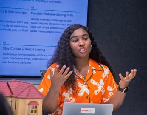 The tour began with a warm welcome and safety briefing, helping attendees familiarize themselves with Oracle’s dynamic corporate culture and its focus on well-being. Shortly thereafter, participants gathered for an inspiring company overview. Oracle Academy Program Manager, Bekere Amassoma shared the company’s global mission and impact and afterwards, Bekere anchored the skills development/mentorship session where she shared about global tech roles such as AI Engineering, Cloud Architecture, Data Analysis, Software Development, Project Management etc. She also provided guidance on building a future in STEAM, Robotics, and AI and quick tips on leadership, innovation, and problem solving.