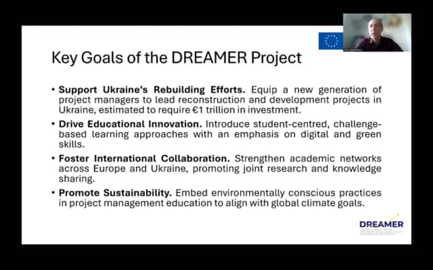 On November 27, 2025, university lecturers and industry professionals from across the EMEA region (Europe, Middle East and Africa) gathered online for a webinar introducing the DREAMER project—an ambitious, EU-funded venture dedicated to empowering Ukraine’s post-war recovery and reshaping project management education for a new era. The event was not just another announcement of university cooperation but a meaningful example of international solidarity, digital innovation, and practical action for regional development and reconstruction.