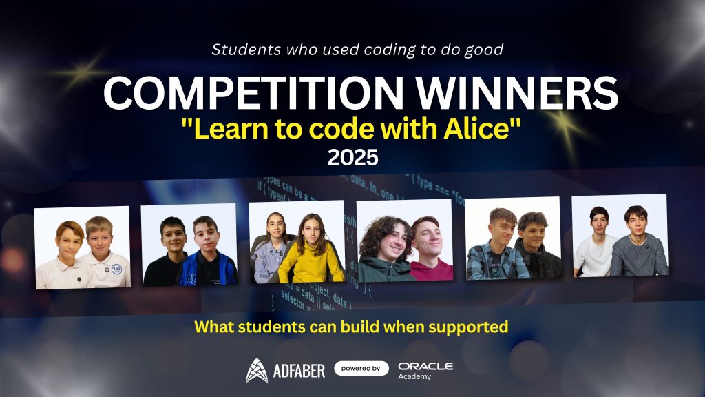 With great enthusiasm, Oracle Academy and Adfaber Association announces the winners of the “Learn to Code with Alice” 2025 national competition.