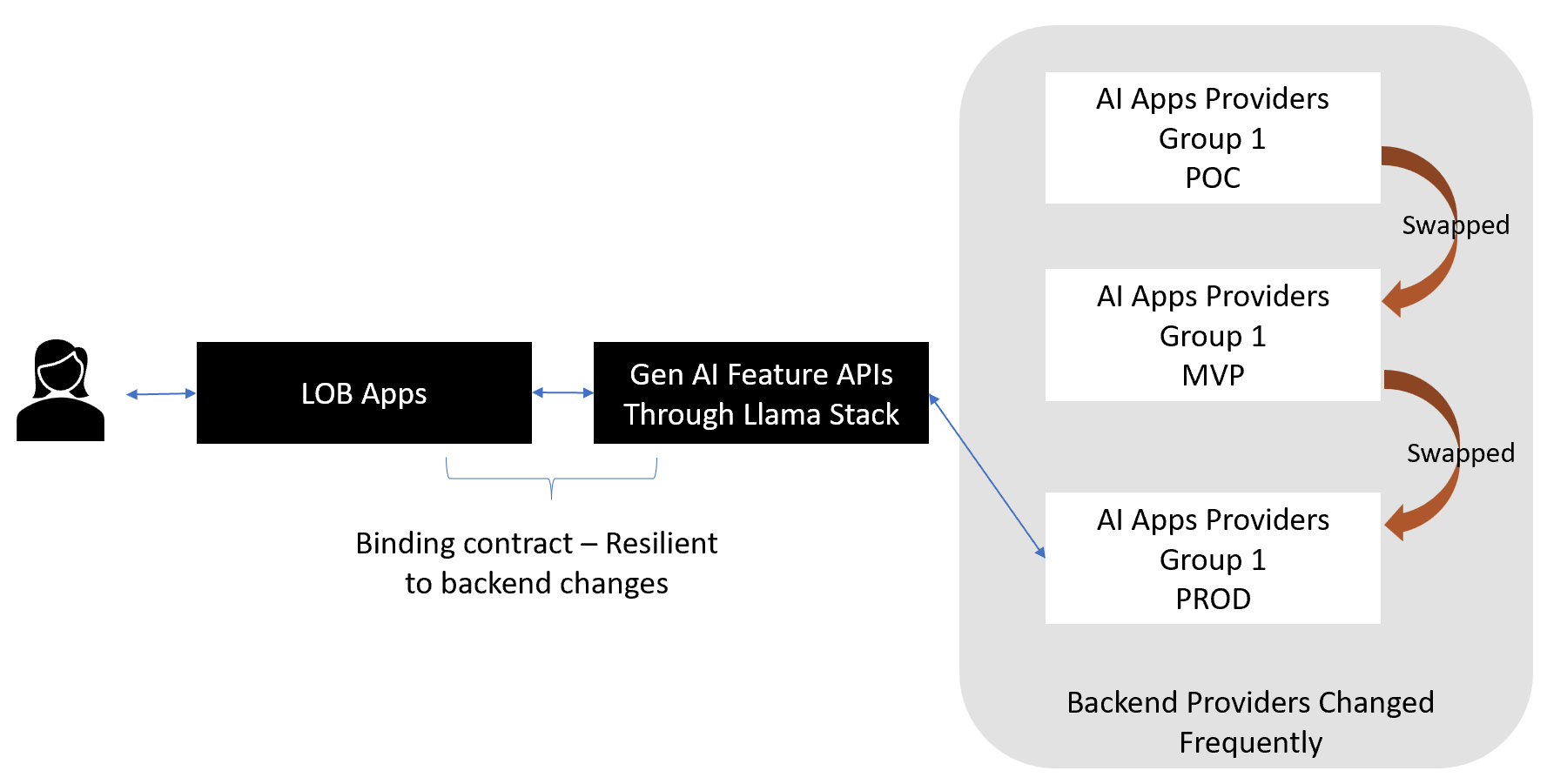 Figure 1 – Details the flow between app integrations with llama stack & provider dependency swapped