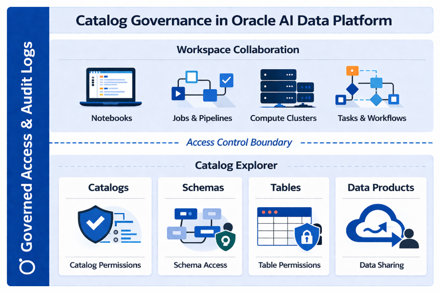 Catalog governance in Oracle AI Data Platform Workbench is designed for the realities of modern enterprise AI. It provides a model where access is precise, scalable, and aligned with how organizations actually manage data.