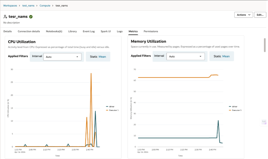 In these cases, debugging requires understanding whether the problem lies in the notebook logic or in the size and configuration of the compute environment. The appropriate fix may involve query optimization, but it may also require additional worker nodes, a larger cluster, or changes to runtime configuration. With AIDP Workbench, the Metrics tab makes it easier to see when the job is running into memory or CPU pressure rather than a logic issue in the notebook.
