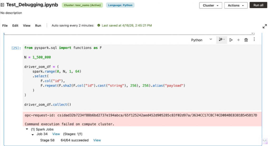 Some notebook failures are not caused by incorrect logic. A cell may fail because the workload exceeds the available compute i.e., the driver may run out of memory, executors may spill excessive data, or a shuffle-heavy job may overwhelm available resources.