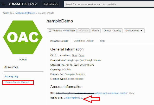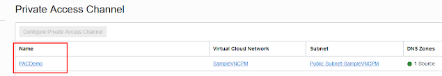 1. Logon to your OCI OAC access console and click on ‘Private Access Channel’