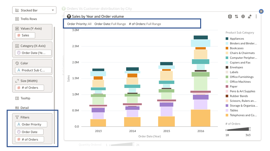Oracle Analytics provides easy and powerful filter interaction capabilities on dashboards that empower users to slice and dice data quickly, perform deeper data analysis, and narrow down to the data that users are interested in.