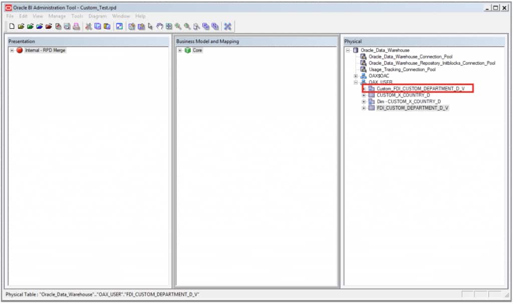 Before completing this step, you must first configure Oracle Analytics Client Tools (Oracle BI Administration Tool) and export the Semantic Model Template. See Configure Oracle Analytics Client Tools (Oracle BI Administration Tool) and Export the Semantic Model Template. These processes are outlined in detailed in this blog article Merge External Applications.