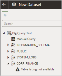 - Within OAC, you see datasets but the underlying tables aren’t available: