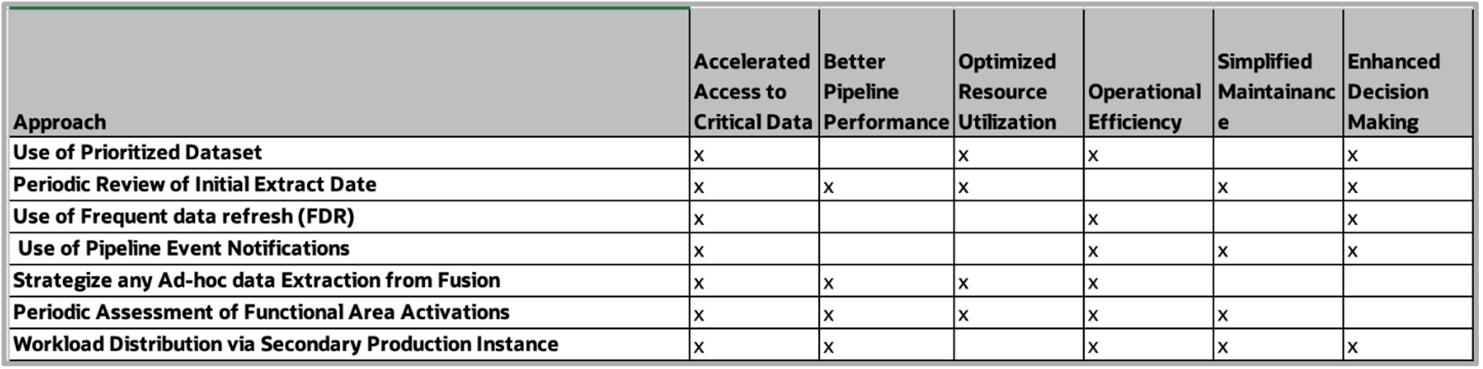 It’s important to note that each approach isn’t mutually exclusive. In fact, Oracle recommends combining multiple practices and optimizations to achieve the desired pipeline performance and resiliency.
