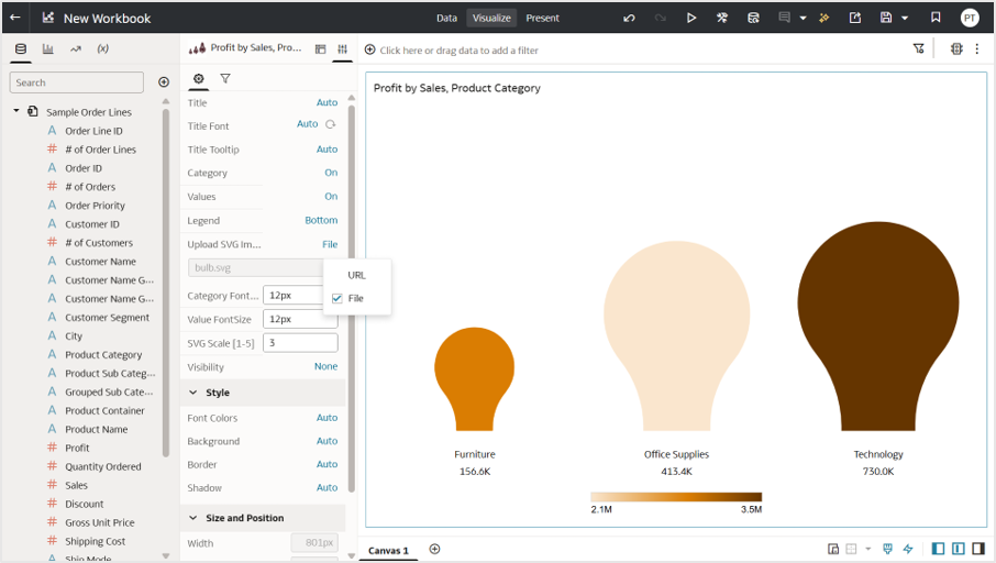 Share your SVG experiments and dashboards with the Oracle Analytics Community.