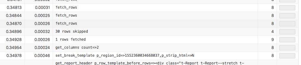 To get this view, Application Express had to actually discard the first 30 rows and to stop fetching after row number 40. Before APEX 18.1, the report always started to fetch at the first row – then 30 rows were discarded. After row #40, APEX simply stopped fetching and closed the cursor.