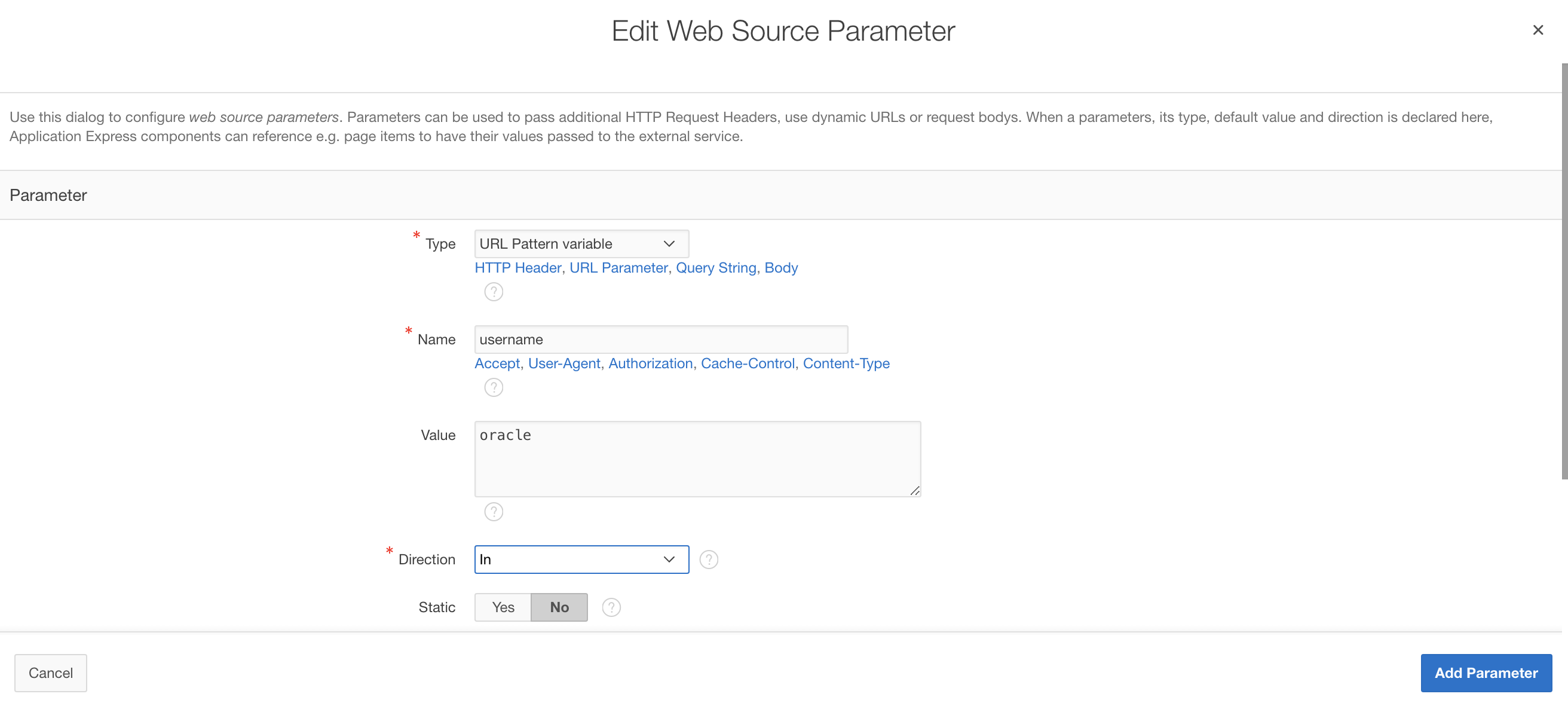 Click on Add Parameter, when finished.