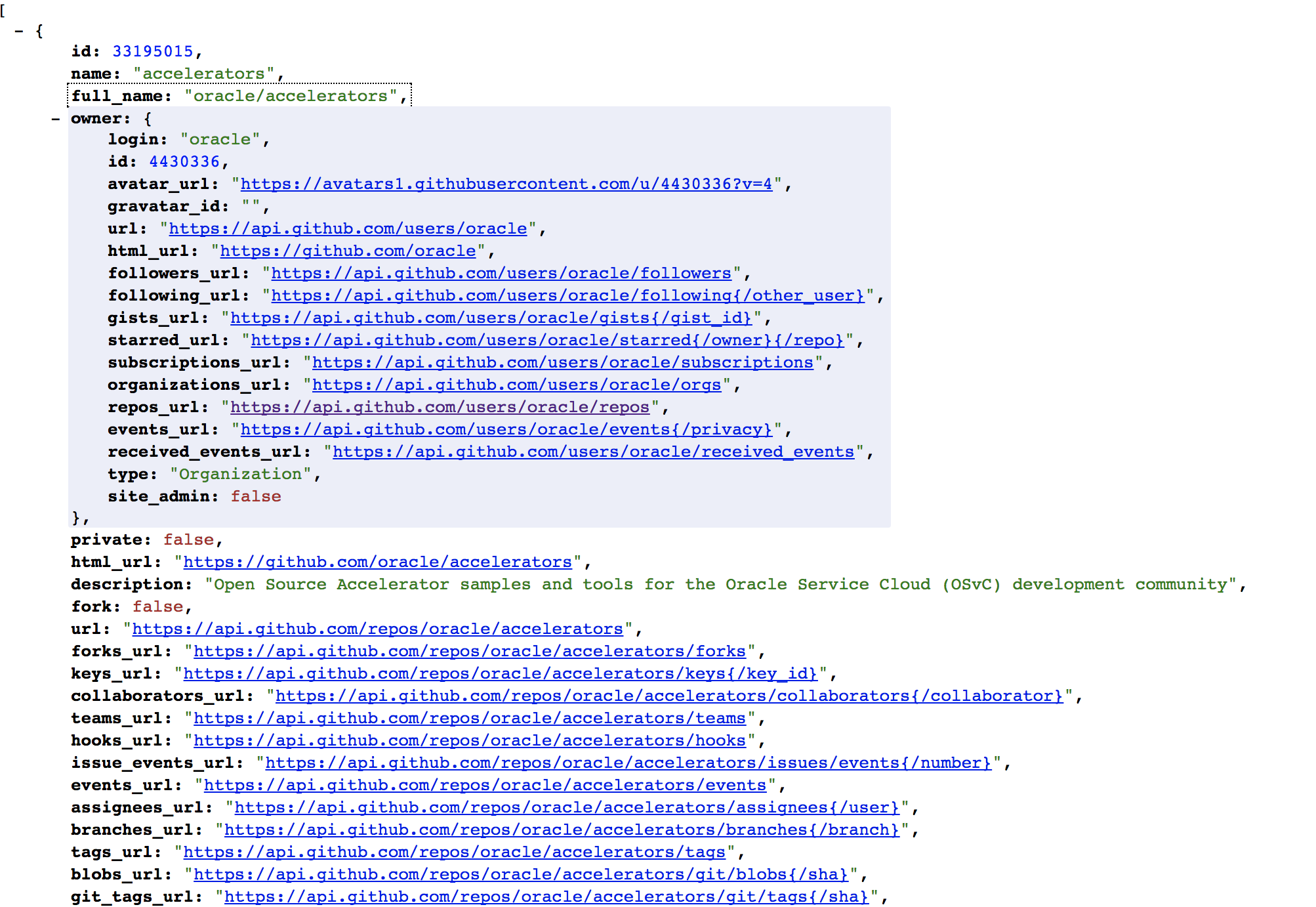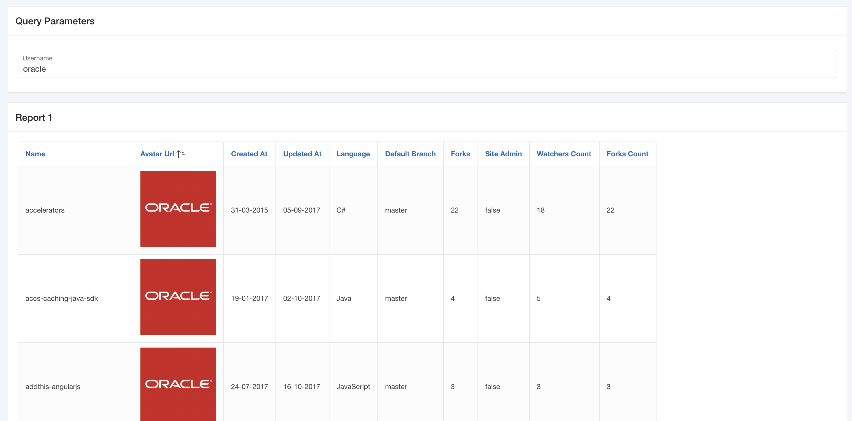 • URL Endpoint: https://api.github.com/users/oracle/repos