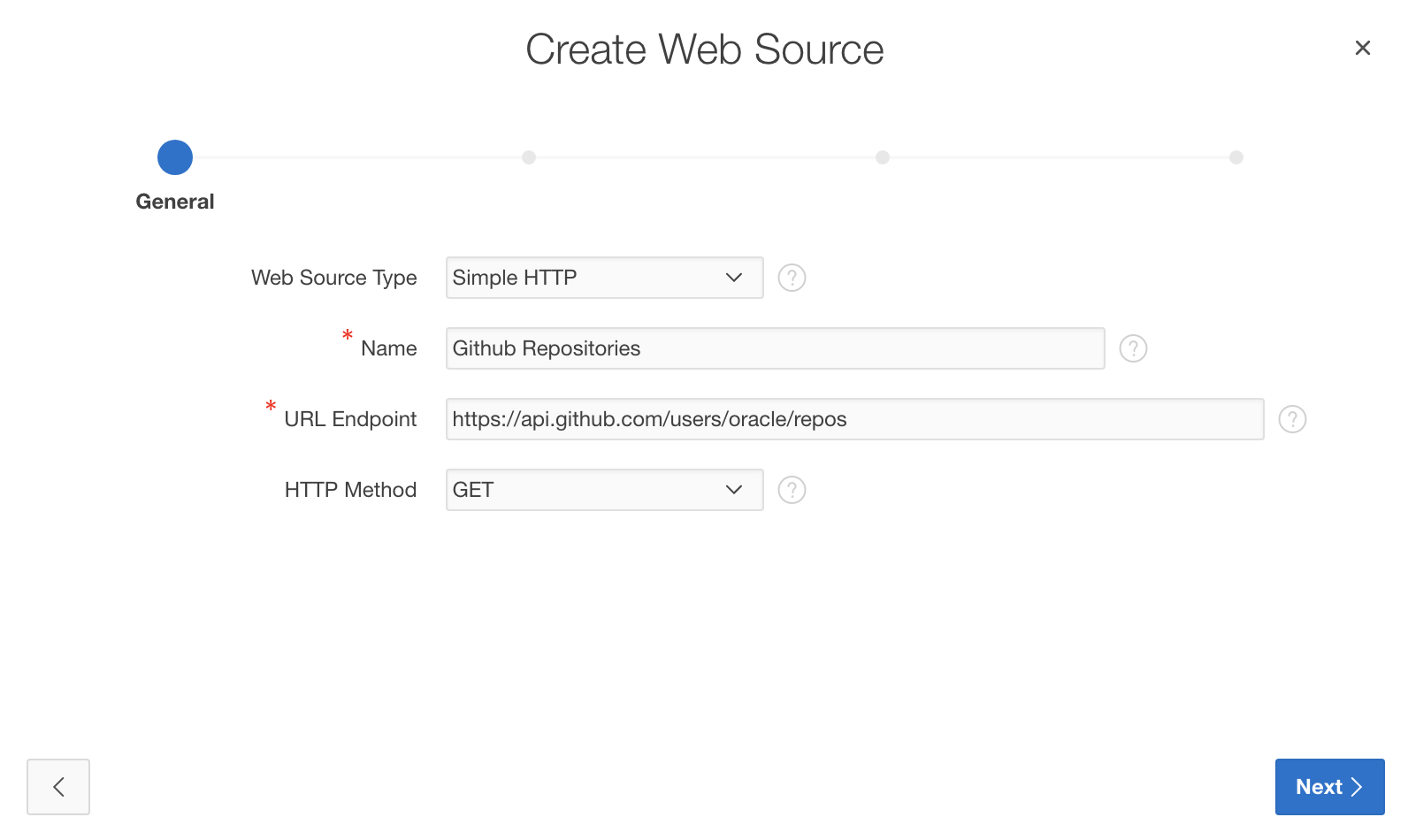 • Web Source Type: Simple HTTP (keep default)