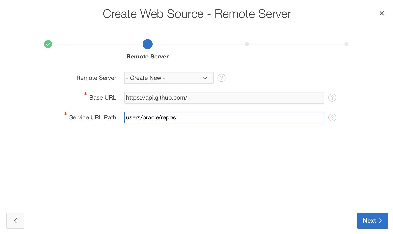 • Service URL Path: users/oracle/repos