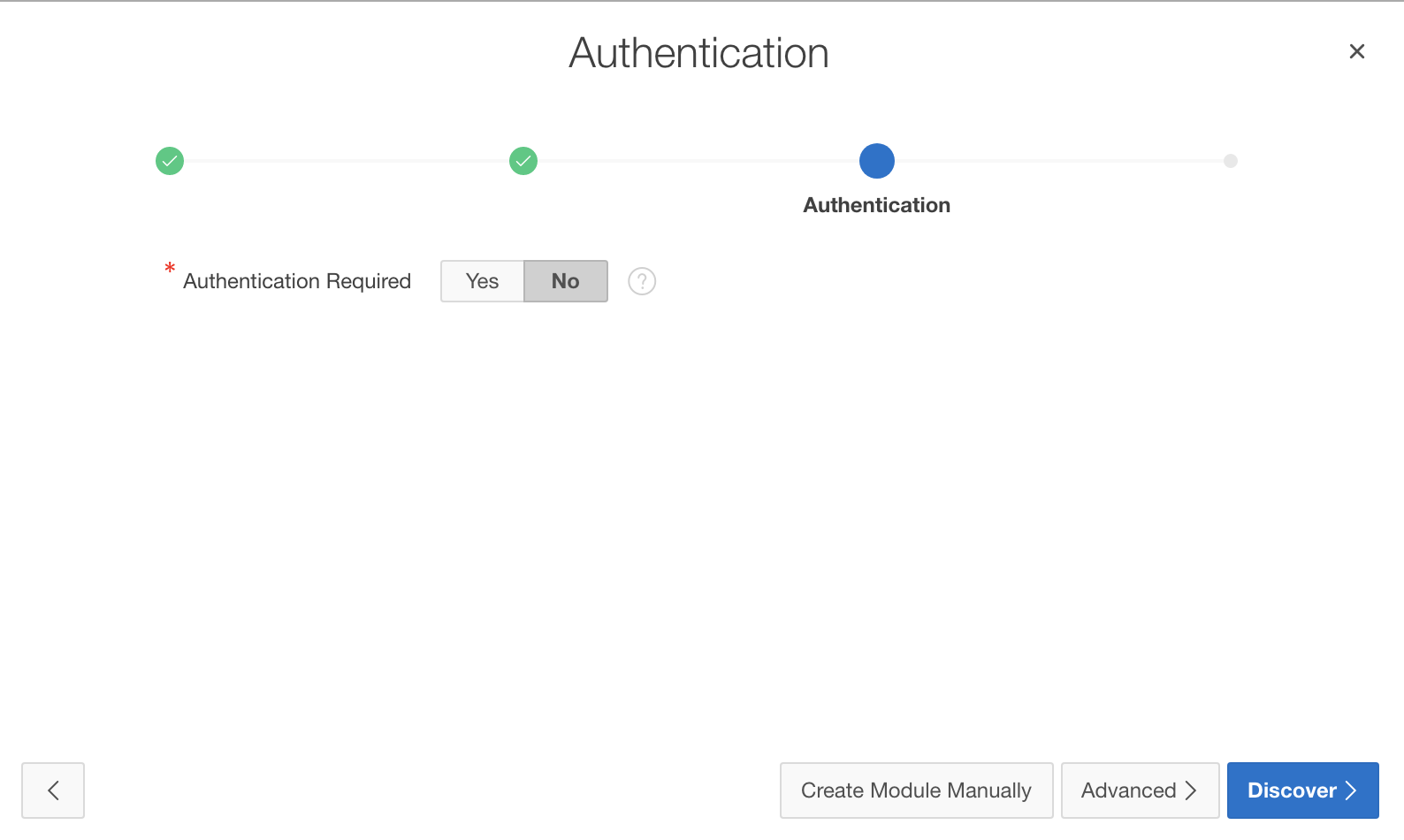 The next wizard step is about Authentication. The Github API does not require authentication, so simply click the Discover button in order to have Application Express invoke the REST endpoint.