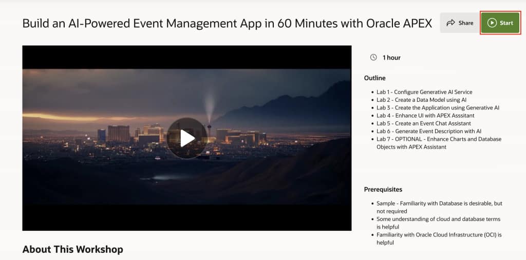 - Click the URL: https://apex.oracle.com/go/event-mgmt-lab