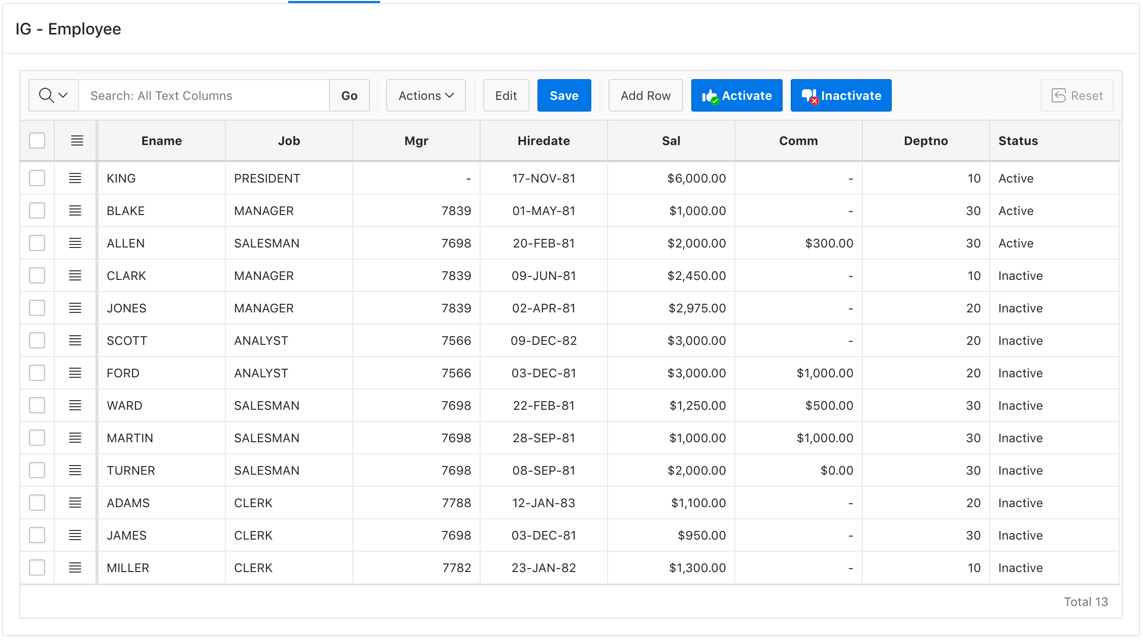 Finally, you should have the Interactive Grid with both activate and inactivate buttons.