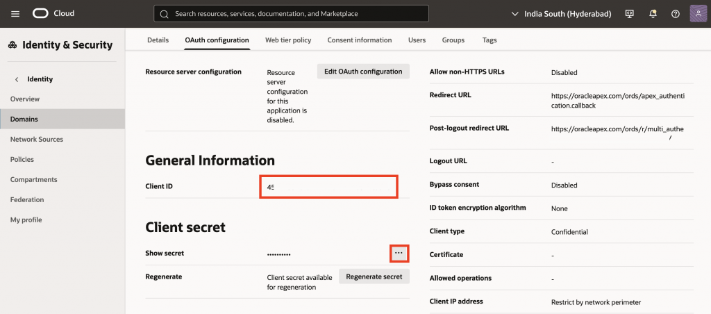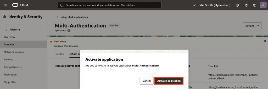 2. Copy the Domain URL – you will need it later to configure the Authentication Scheme in your APEX application.