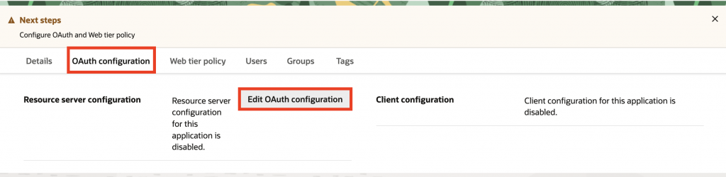 7. Once created, navigate to the OAuth configuration tab and click Edit OAuth configuration.
