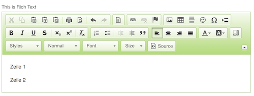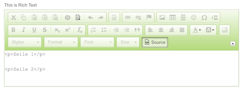 Let’s start with a few simple tests. The following Javascript function will set the editor’s base color to green and we’ll disable the resizing capability, so end users won’t be able to resize the editor any more. After saving the function, reload the page to see the effects.