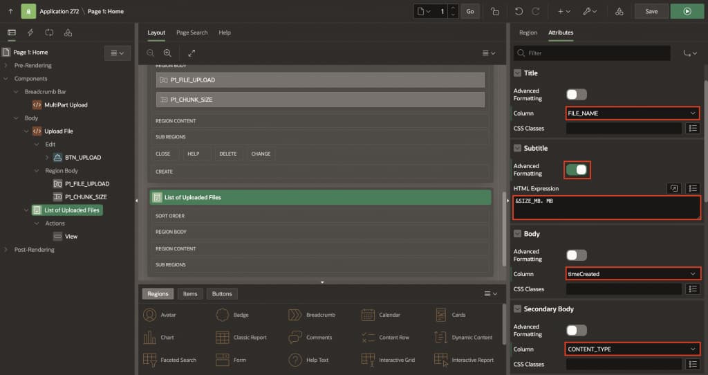 - Right-click on the Upload File region and select Create Page Item.