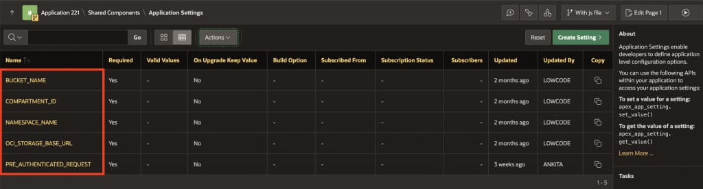 Configure application-level settings to store OCI configuration. These settings will be referenced in the package that we’ll create in the next step.