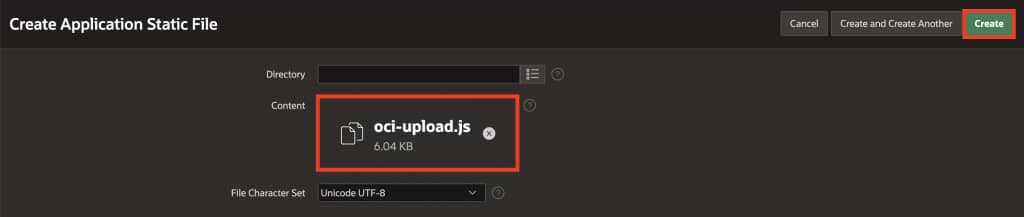 oci-upload.js - Click Create.