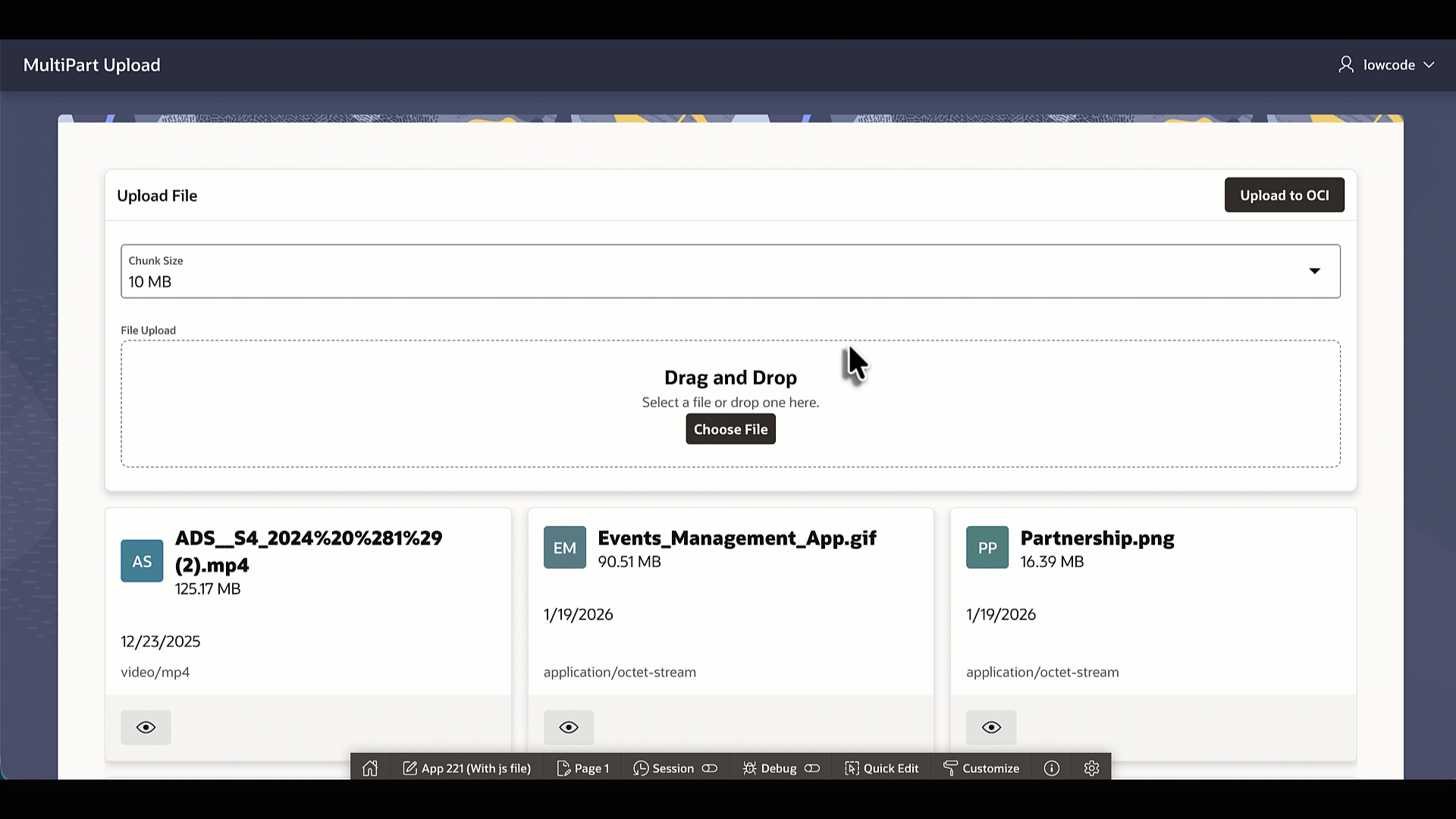 When dealing with large files – videos, datasets, backups, or anything exceeding 100MB – a well-architected approach becomes essential. Standard upload methods can strain server resources and impact user experience. This blog demonstrates a production-ready solution using client-side chunking combined with OCI’s multipart upload API.