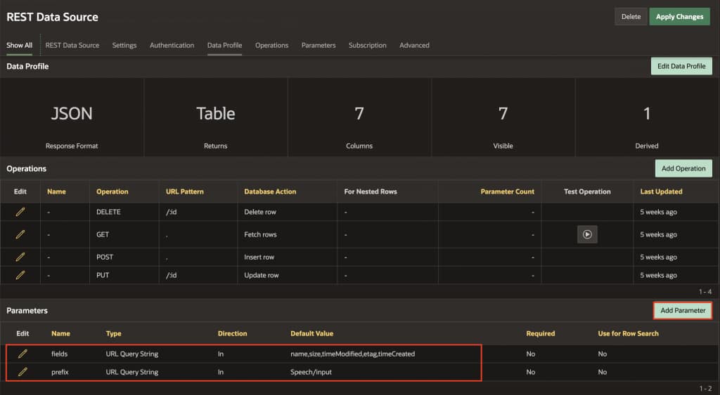 The REST Data Source acts as a bridge between APEX and OCI Object Storage, allowing you to query files without server-side processing.