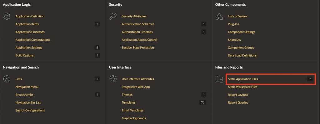 - In your APEX application, go to Shared Components > Static Application Files