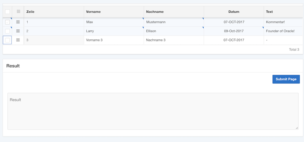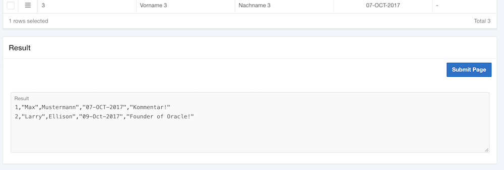 From here, you can do almost anything: On the processing side, you are within the PL/SQL domain: You might process the data and finally store it some tables, call web services or do whatever you need. Thus interactive grid is much more than just a tabular form on a table; your application can do anything with the end user inputs.