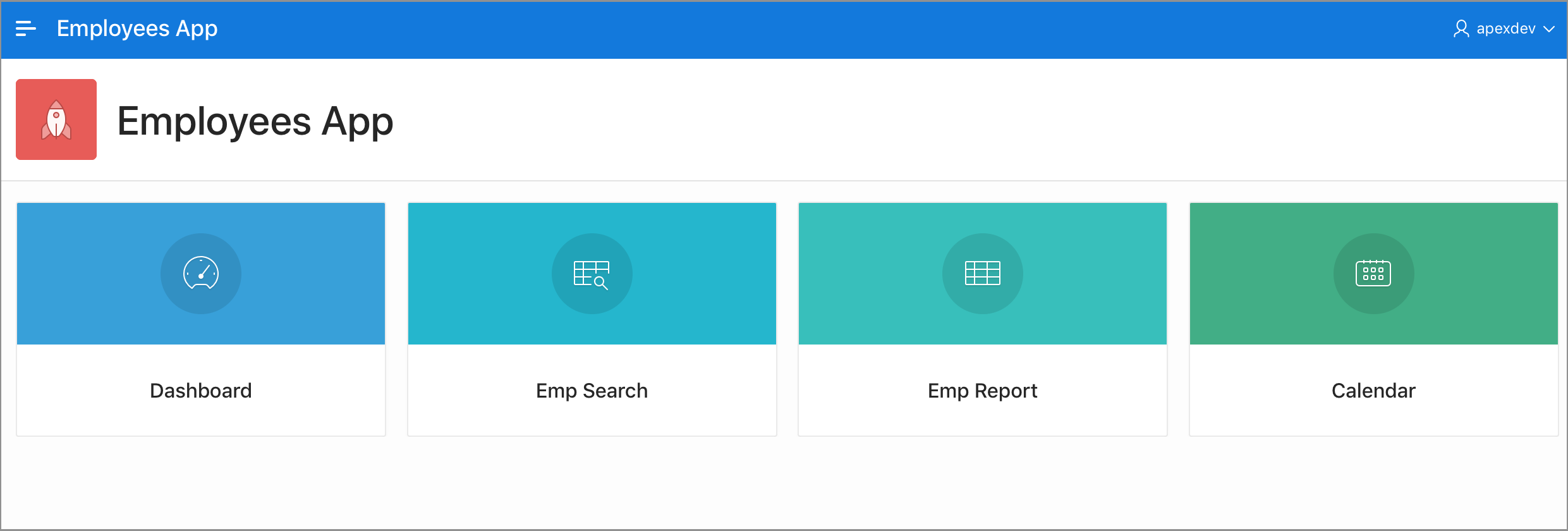 - In the Create Application wizard, enter Employees App for Name and then click Create Application.