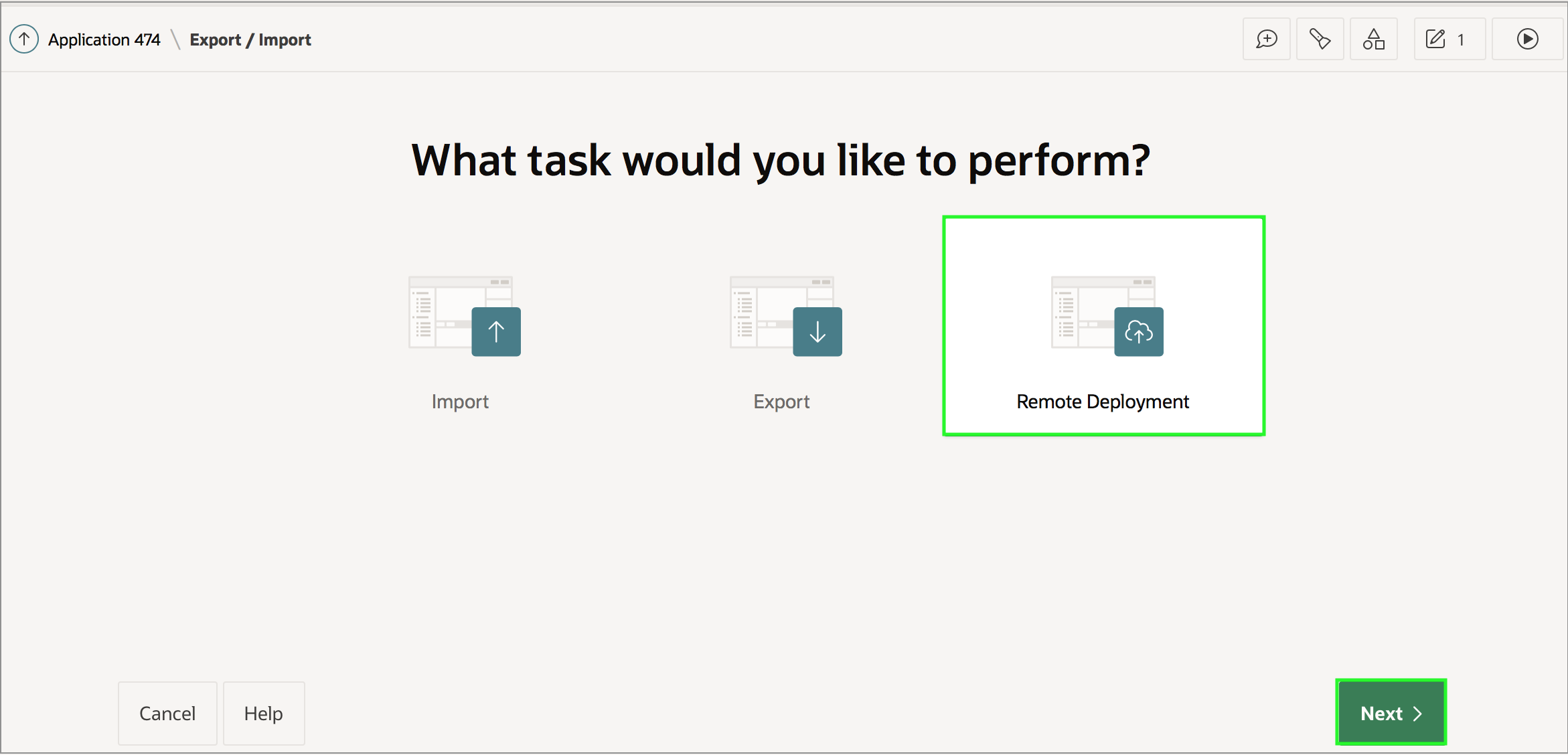 Oracle APEX 20.1 simplifies this process by introducing the One-click Remote Application Deployment wizard. Using a simple wizard, you can now directly export and deploy your application along with the supporting objects into the target system. You no longer need to separately export the app and its objects from the source system into files and then import into the target system. With just one-click, you can directly deploy your app definition along with the objects from the source system to the target system. For example, from within your development environment, you can deploy your app to the remote production environment. You do not need to directly access your production environment to import the app.