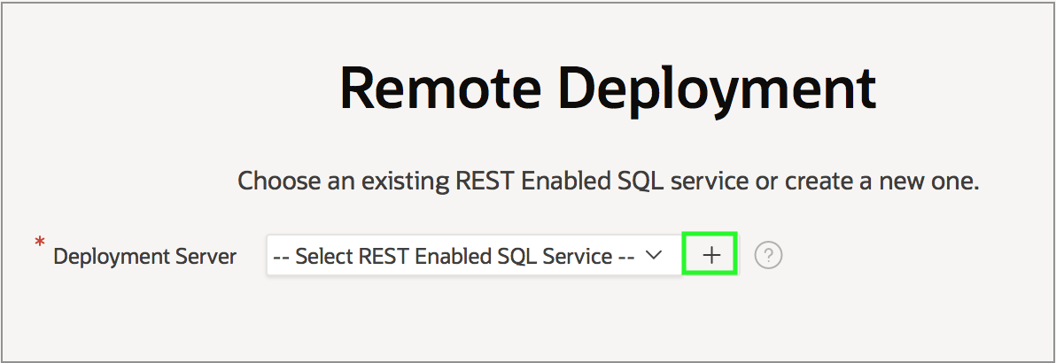 - Choose an existing REST Enabled SQL Service or create a new one. In this example, click the Add Deployment Server ( + ) icon next to the Deployment Server select list.