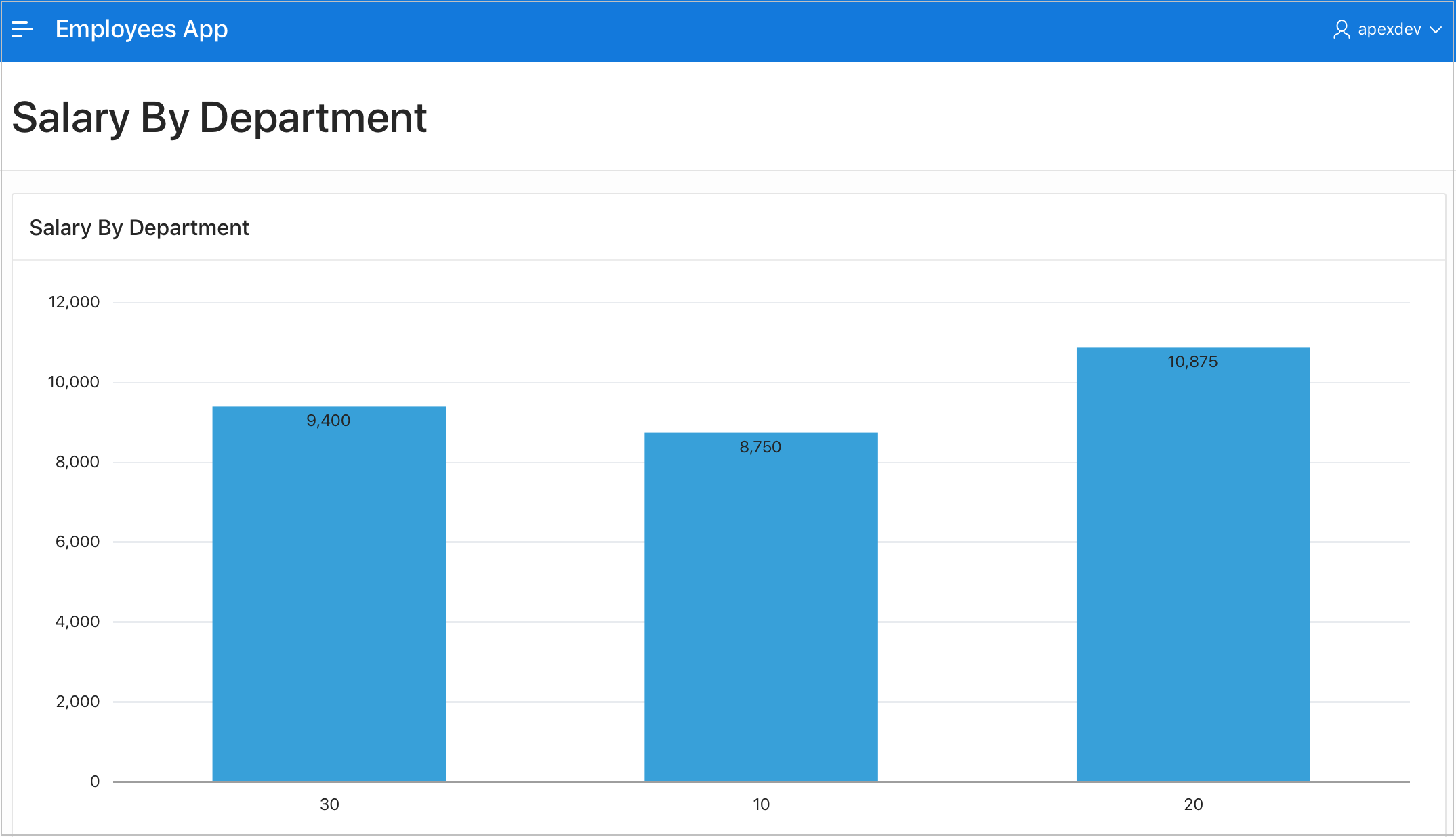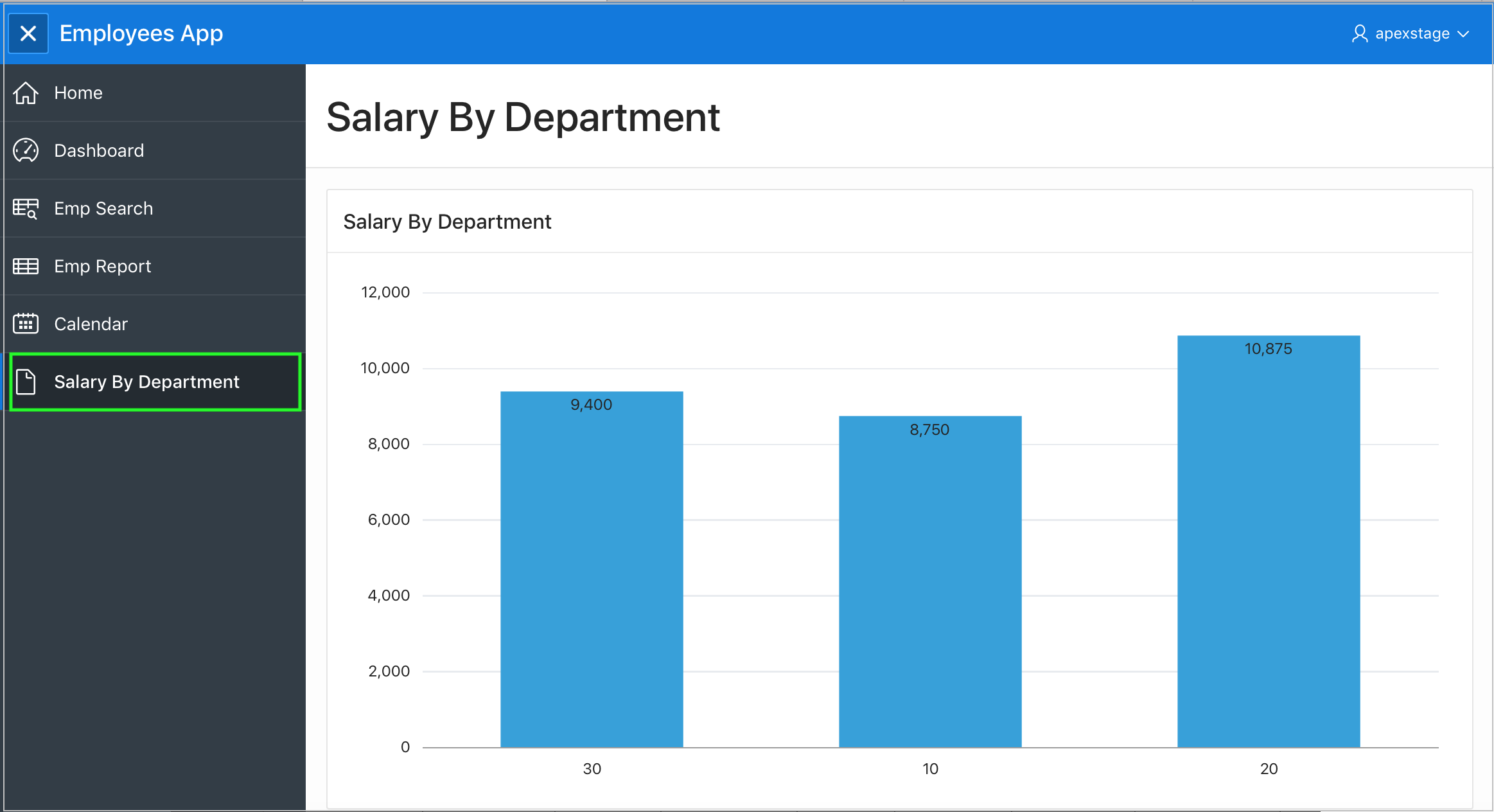 Click Salary By Department in the left navigation menu. The chart is displayed.