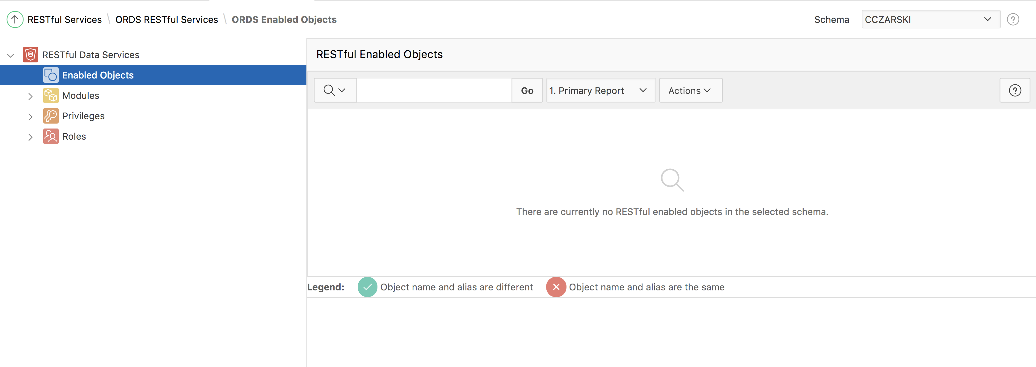 Click on the Enabled Objects tree node on the left. Right now, no objects should be REST-Enabled, i.e. there should be no exposed REST APIs right now.