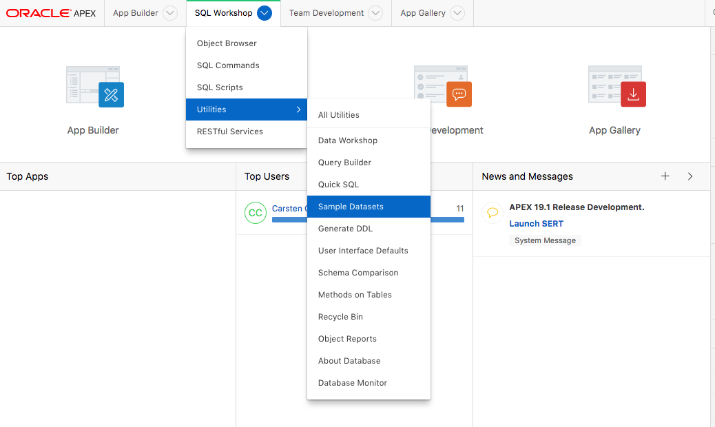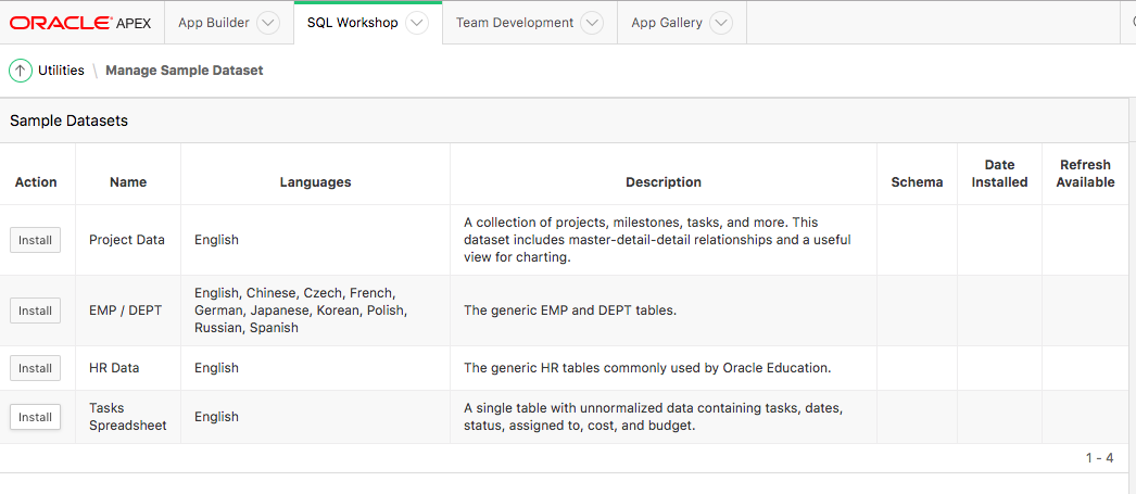 Navigate to SQL Workshop > Utilities > Sample Datasets