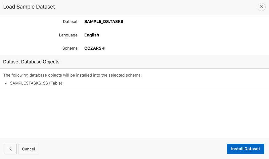 You’ll see a list of available sample datasets. Click the Install button for Tasks Spreadsheet dataset.
