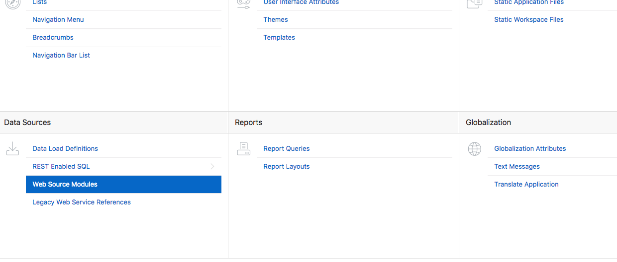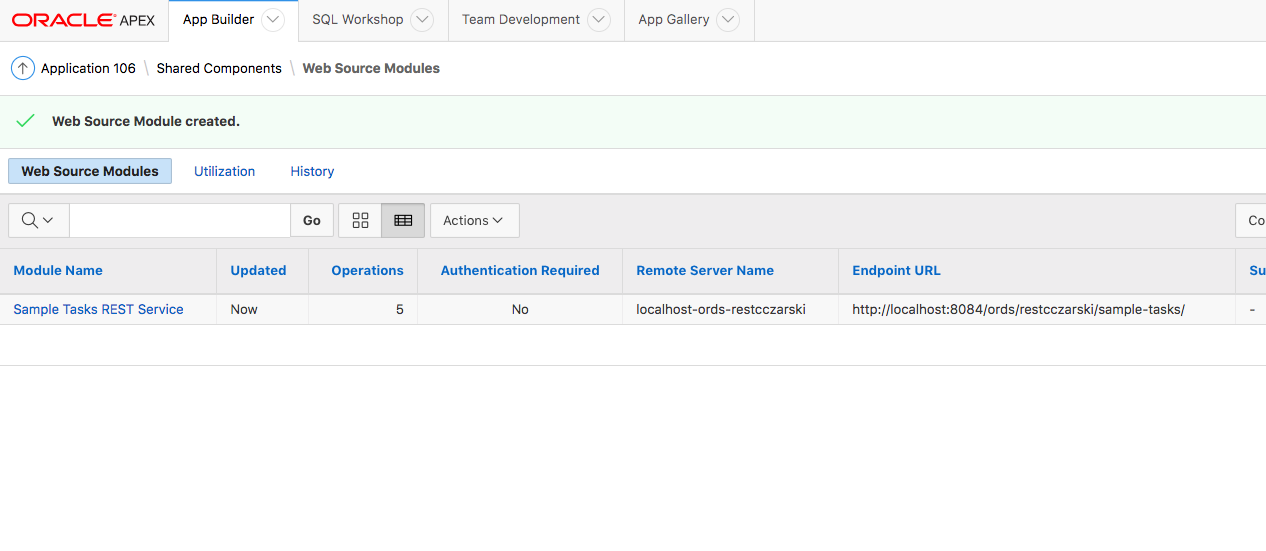 Now create a new APEX application ( or use an existing one ), navigate to Shared Components > Web Source Modules.