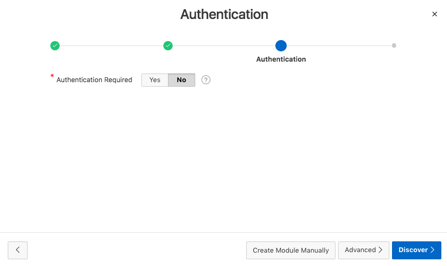 Since the REST service does not require Authentication, simply click the Next button in the Authentication wizard step.