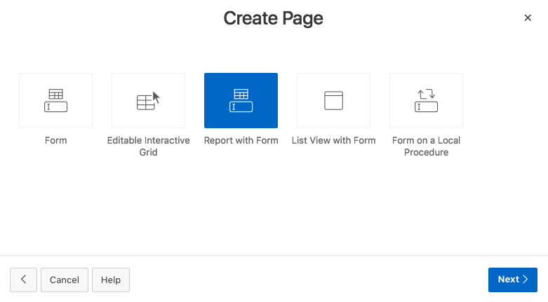 - Choose the implementation you want to use: Interactive Report, Classic Report. Interactive Grid is not supported with REST services in APEX 19.1, so you cannot use Interactive Grid. Pick Interactive Report.