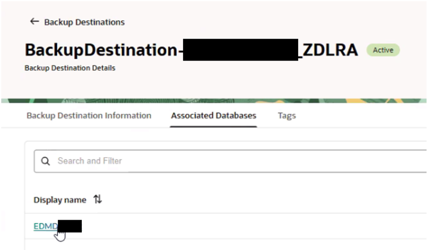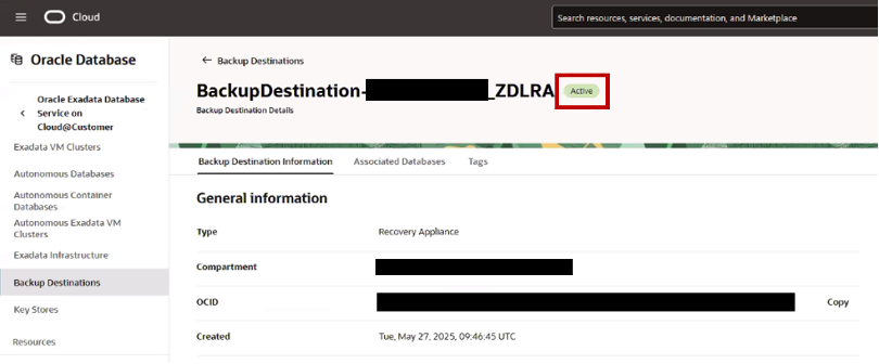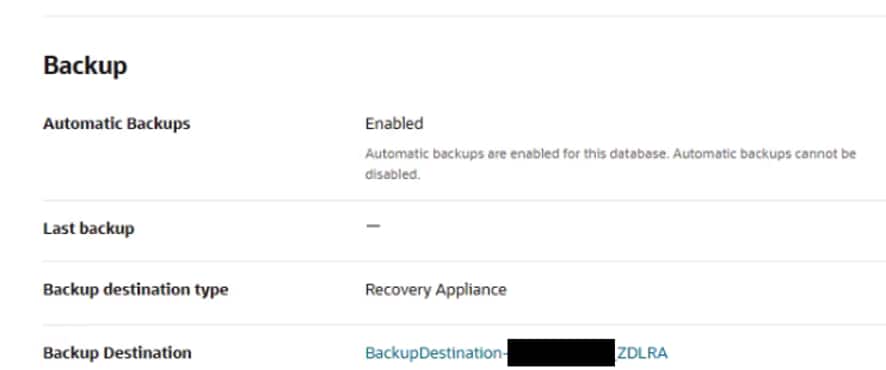 - On the OCI side it is necessary to associate the Recovery Appliance as backup destination service. The backup destination should be created using the OCI console.