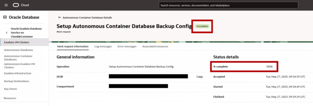 As for configuring an Autonomous Container Database (ACD) with ZDLRA as backup destination, it is not like normal non-autonomous databases, but once ready, the backup is automatically triggered by the preset schedule for the ACD and sent to the ZDLRA repository. There is no need to setup any other backup job.