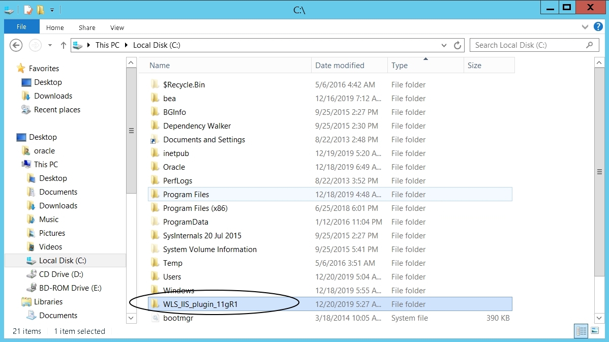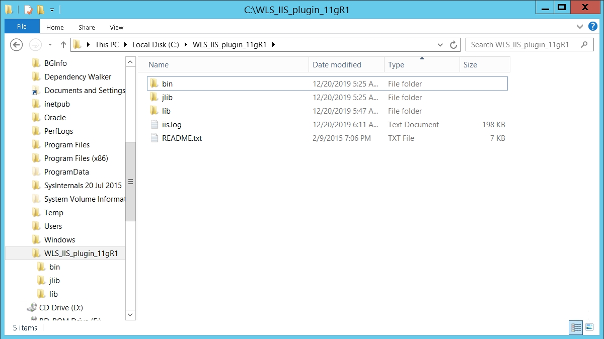 Example : unzip “ofm_wlsplugins_generic_11.1.1.9.0_disk1_1of1.zip”->”WLSPlugin11g-64bit-IIS-win64-x64.zip” to “C:\WLS_IIS_plugin_11gR1”