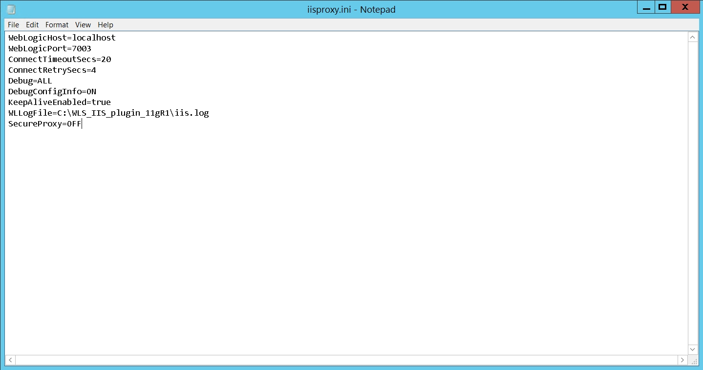 In this example, I have IIS v8.5 installed on Windows 2012R2 forwarding request to WLS 10.3.6 using WLS Plugin 1.1