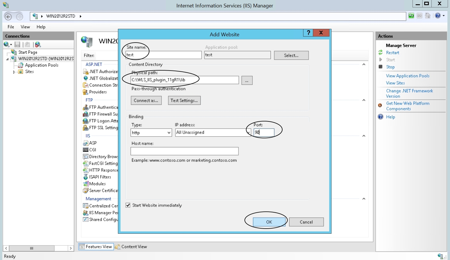 Content Directory -> Physical path: C:\WLS_IIS_plugin_11gR1\lib