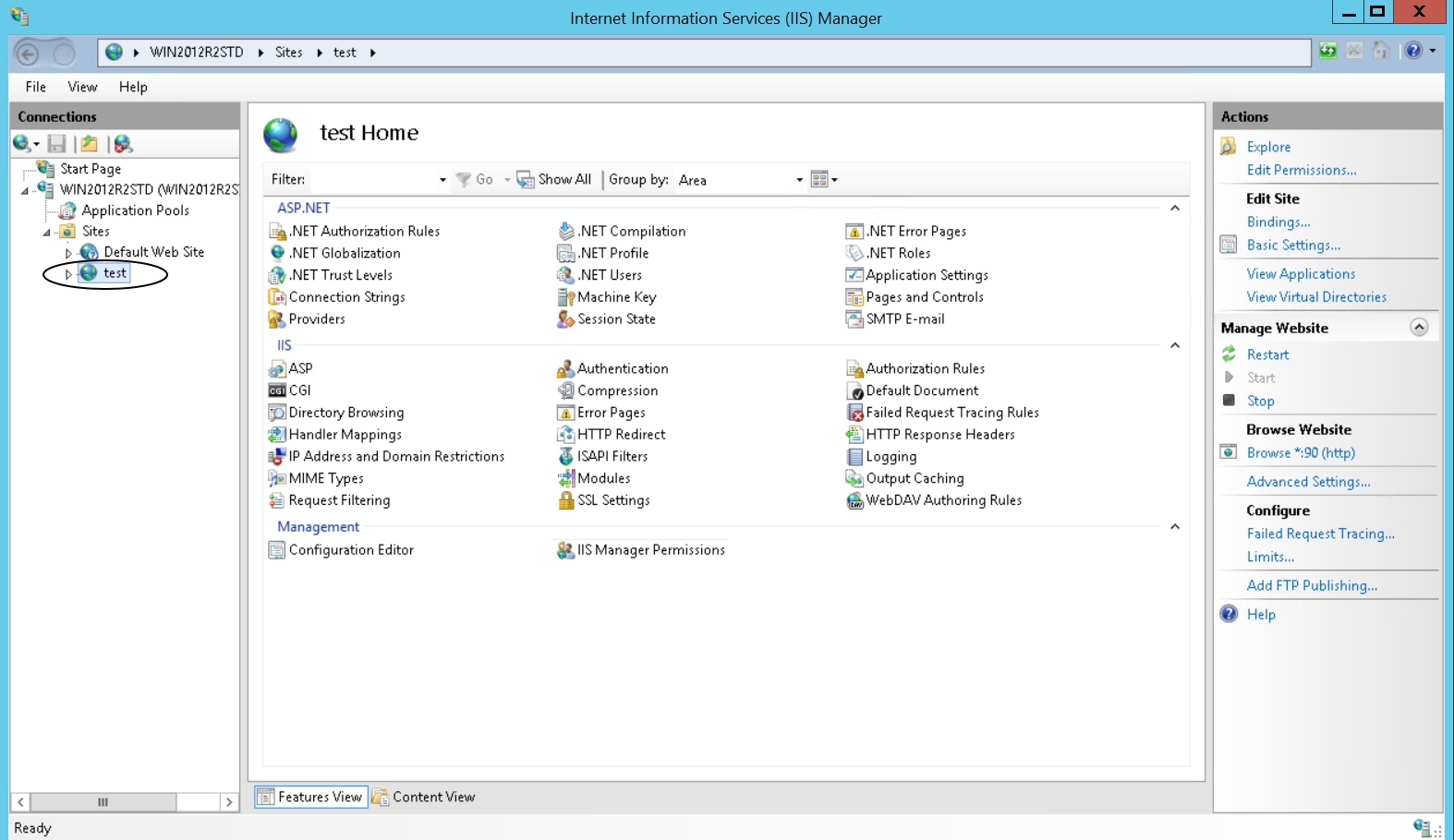 1) Select “test” website -> Basic Settings -> “Test Settings” -> You could see an authorization warning: