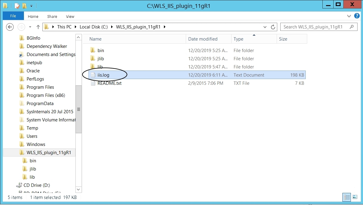4) We have specified “WLLogFile=C:\WLS_IIS_plugin_11gR1\iis.log” in the iisproxy.ini file. If the iis.log file is not generated in this location then create an empty file “iis.log” and the logs should get appended: