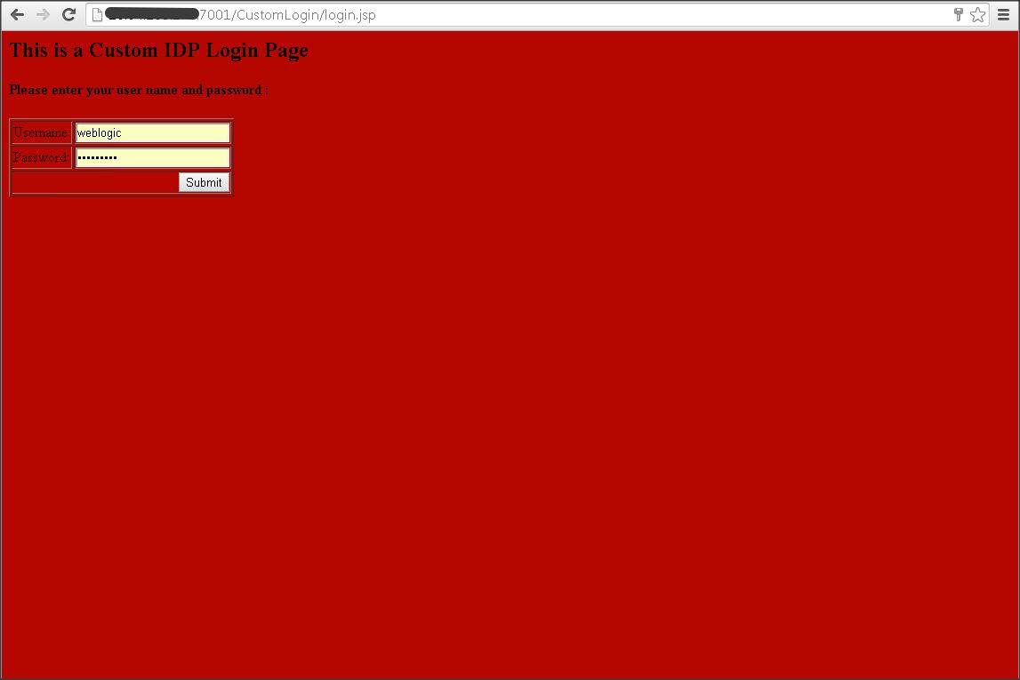 – Login to Weblogic console on IDP domain -> <server> -> Federation Services -> SAML 2.0 Identity Provider -> Login Customized ( enable )