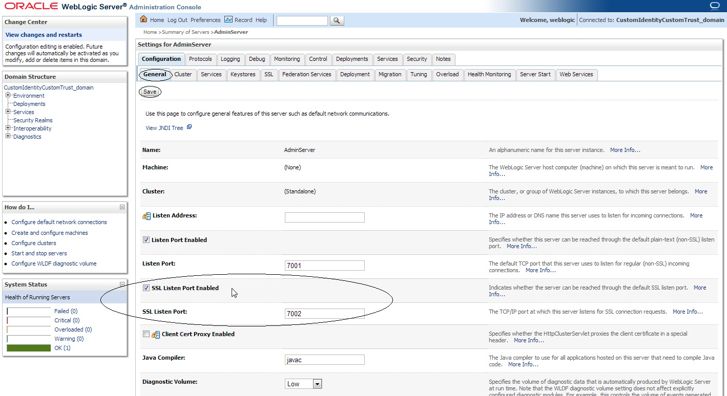 Note : The default SSL Listen Port would be 7002, change it if required.